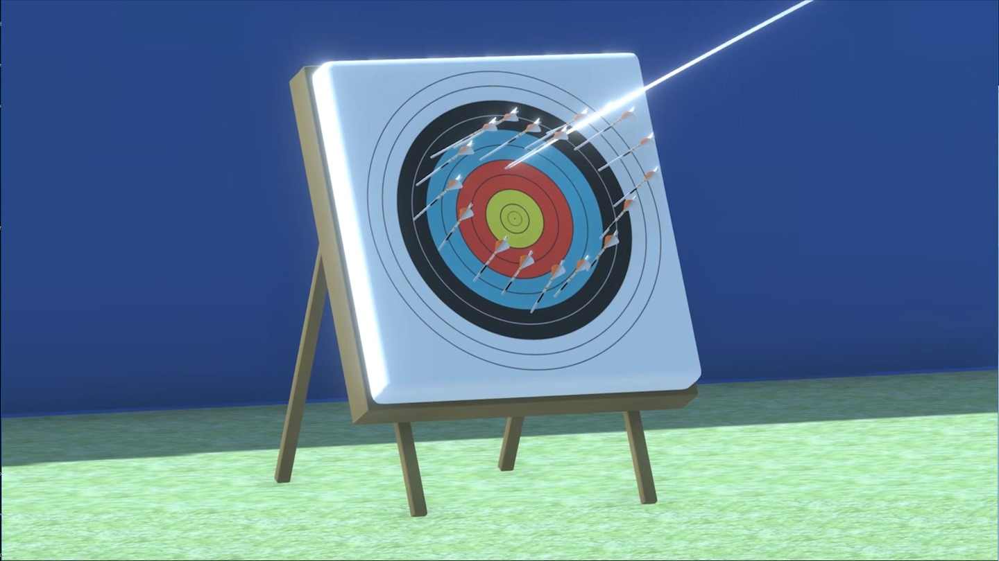 这是一款 VR 游戏,您可以在其中向大空间中的目标射箭。