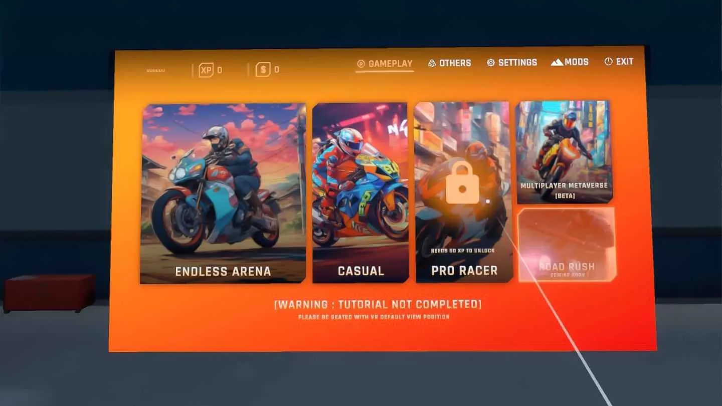 准备好在“Zero Glide – VR Motorcycle Mayhem”中加速您的虚拟引擎,这是一款为 Meta Quest VR 平台量身定制的令人兴奋的街机风格自行车加模拟游戏。