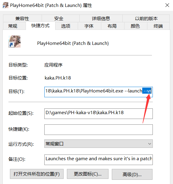 3. 按右键选择此程序,在目标那一栏 –launch 後面加上 –vr,在双击打开就会自动进入VR模式,而Quest设备也会同步跳转画面启动。