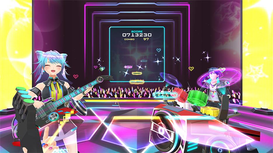 弹奏、敲打、即兴表演!让您的VR演奏焕发勃勃生机! KONAMI全新音游即将登陆OculusQuest 2! 成为乐队钢琴手、吉他手、贝斯手或鼓手,站上舞台演奏,尽在VR! ※《BEAT ARENA》目标玩家为13岁以上人群。